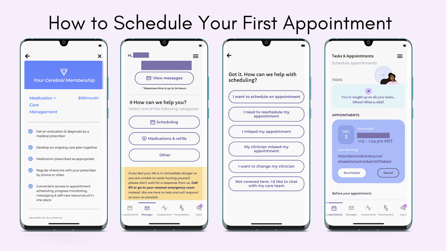 - Sign Up: Begin by creating an account on Cerebral's website or app.